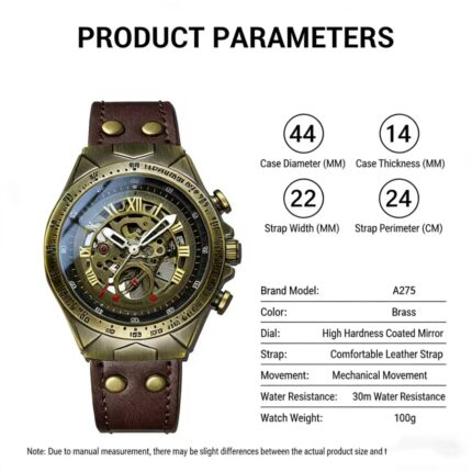 Men’s Vintage Fashion Mechanical Watch – Business Skeleton Brass Wristwatch with Leather Strap(F8-1)
