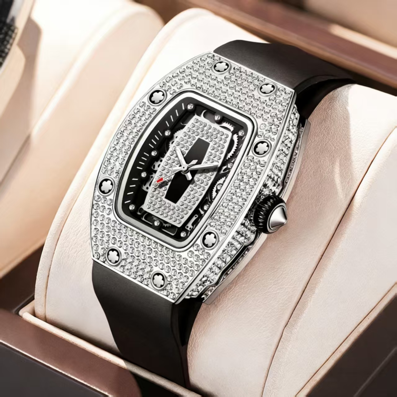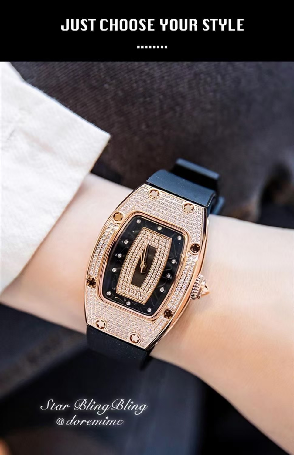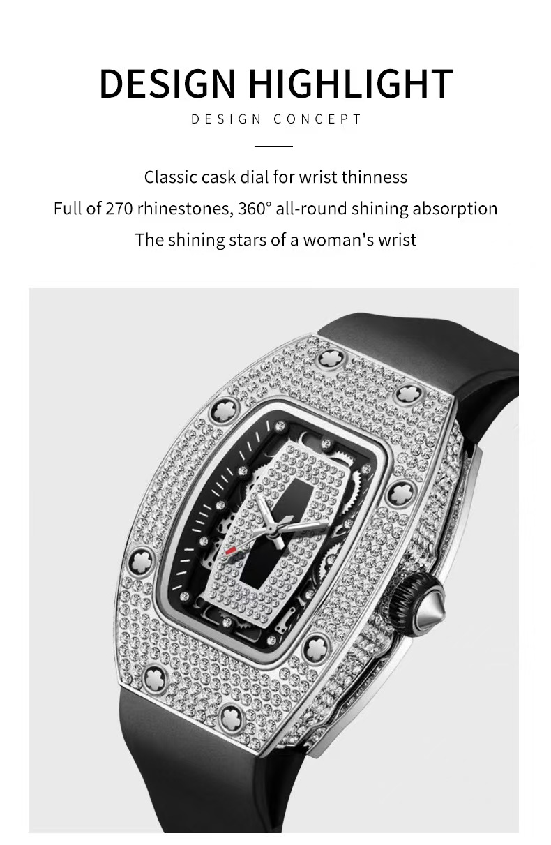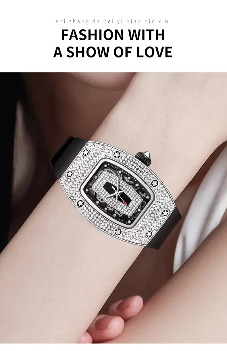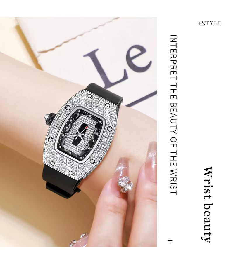 Trendy luxury women’s watch, iconic bling hip hop wristwatch for ladies. Soft silicone strap, durable design, ideal for streetwear and daily wear