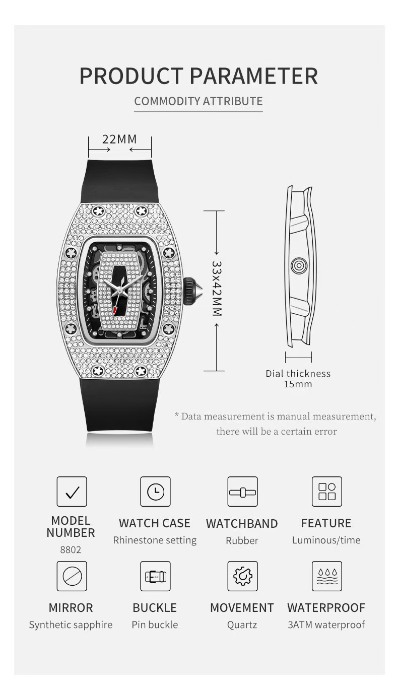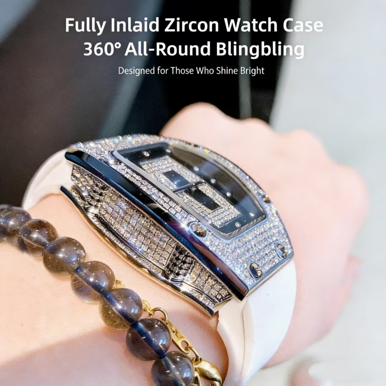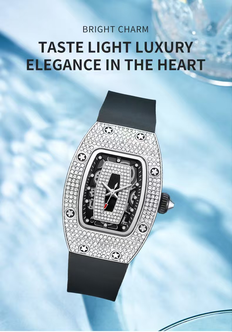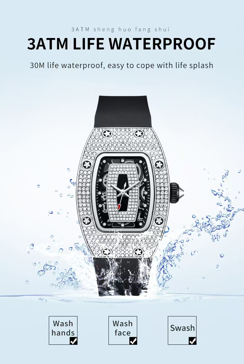 Trendy luxury women’s watch, iconic bling hip hop wristwatch for ladies. Soft silicone strap, durable design, ideal for streetwear and daily wear