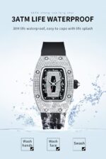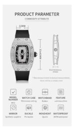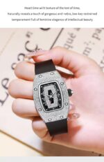 2 reviews for Luxury Iced Out Tonneau Watch for Women – Bling Diamond-Encrusted Silicone Strap Wristwatch