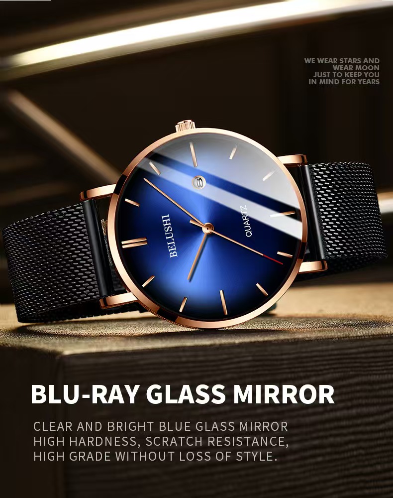 This ultra-thin men’s watch combines minimalist style with daily practicality. Designed with a slim profile and lightweight construction, it offers all-day comfort for work, business meetings, and casual wear. The clear dial and precise quartz movement ensure easy readability and accurate timekeeping, while the durable strap and sturdy case provide long-lasting durability.
